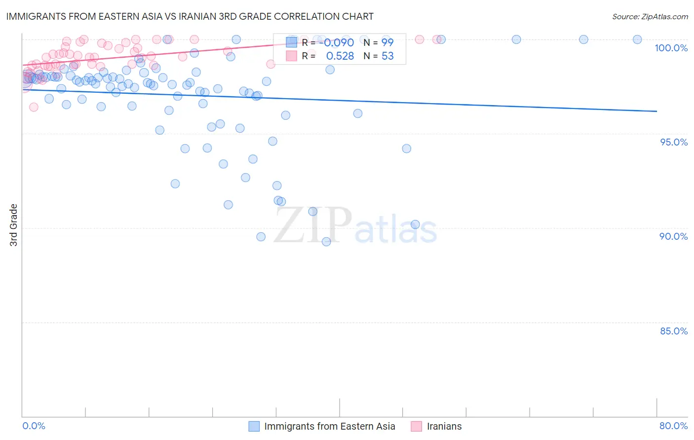 Immigrants from Eastern Asia vs Iranian 3rd Grade Correlation Chart