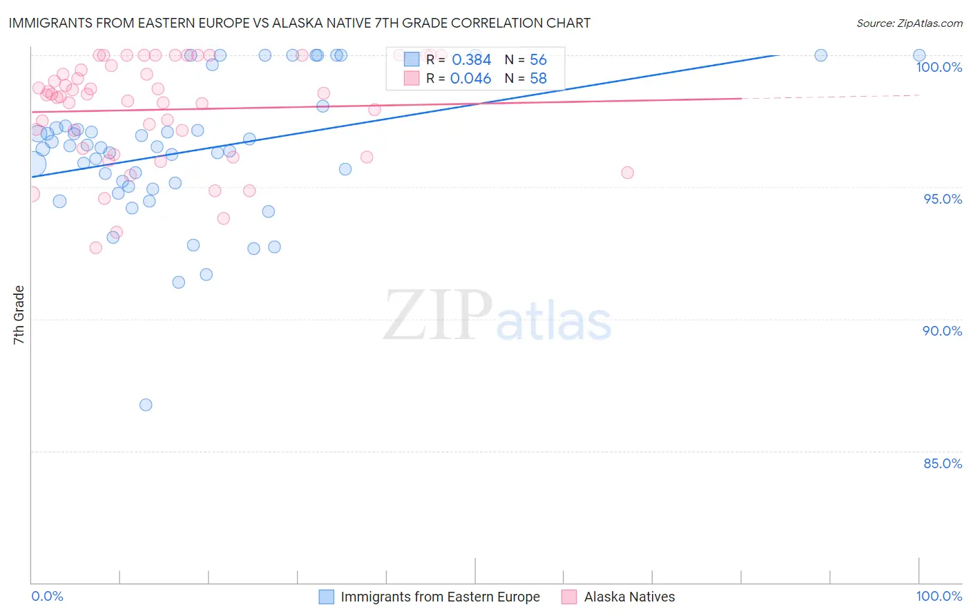 Immigrants from Eastern Europe vs Alaska Native 7th Grade