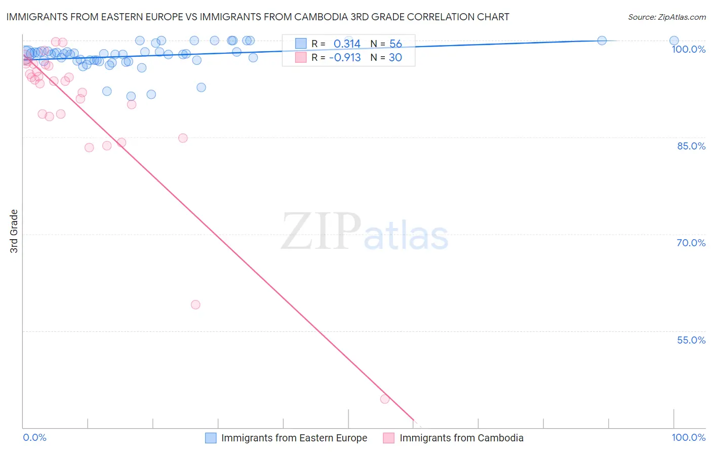 Immigrants from Eastern Europe vs Immigrants from Cambodia 3rd Grade Correlation Chart