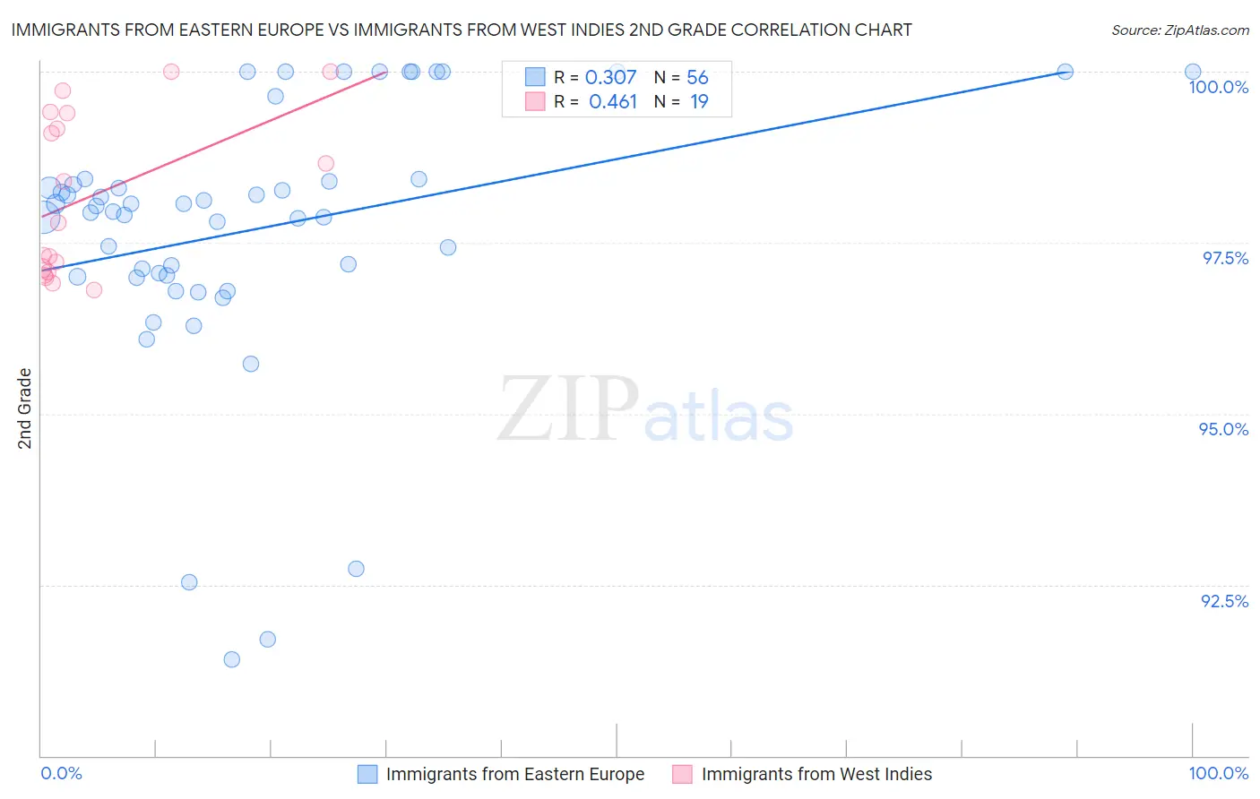 Immigrants from Eastern Europe vs Immigrants from West Indies 2nd Grade Correlation Chart