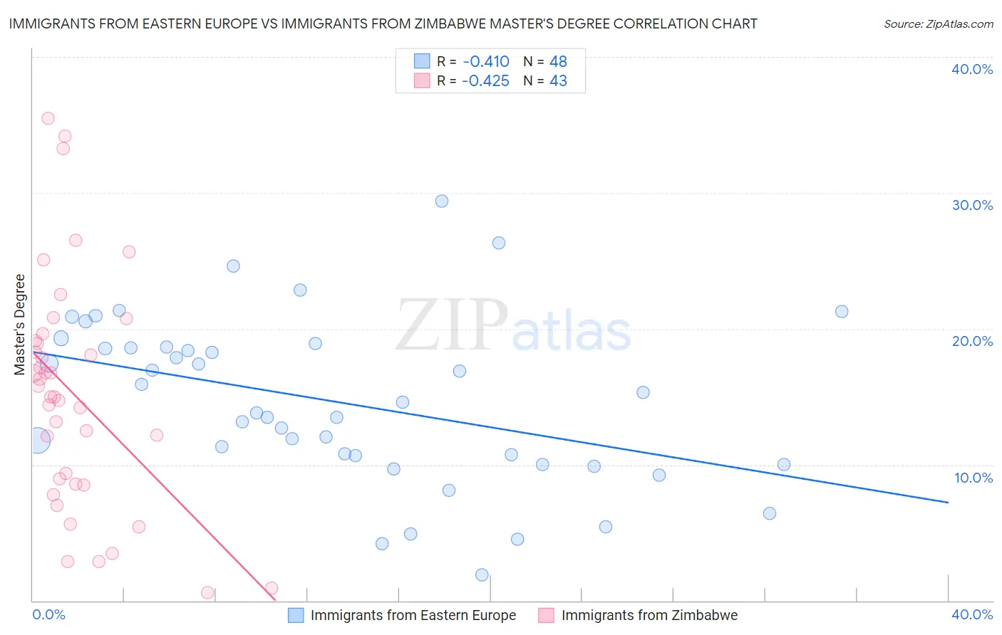 Immigrants from Eastern Europe vs Immigrants from Zimbabwe Master's Degree Correlation Chart