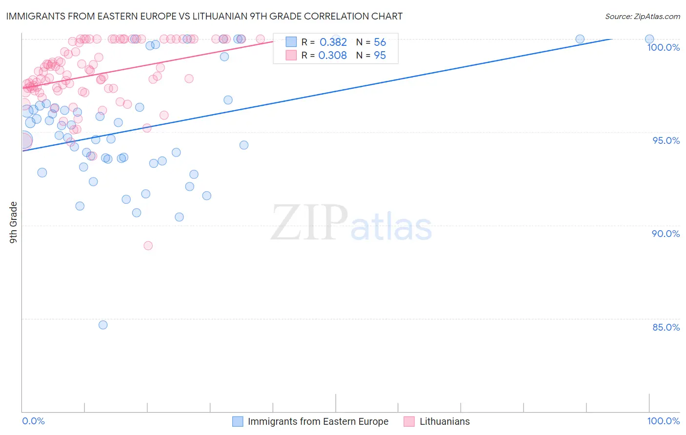 Immigrants from Eastern Europe vs Lithuanian 9th Grade Correlation Chart