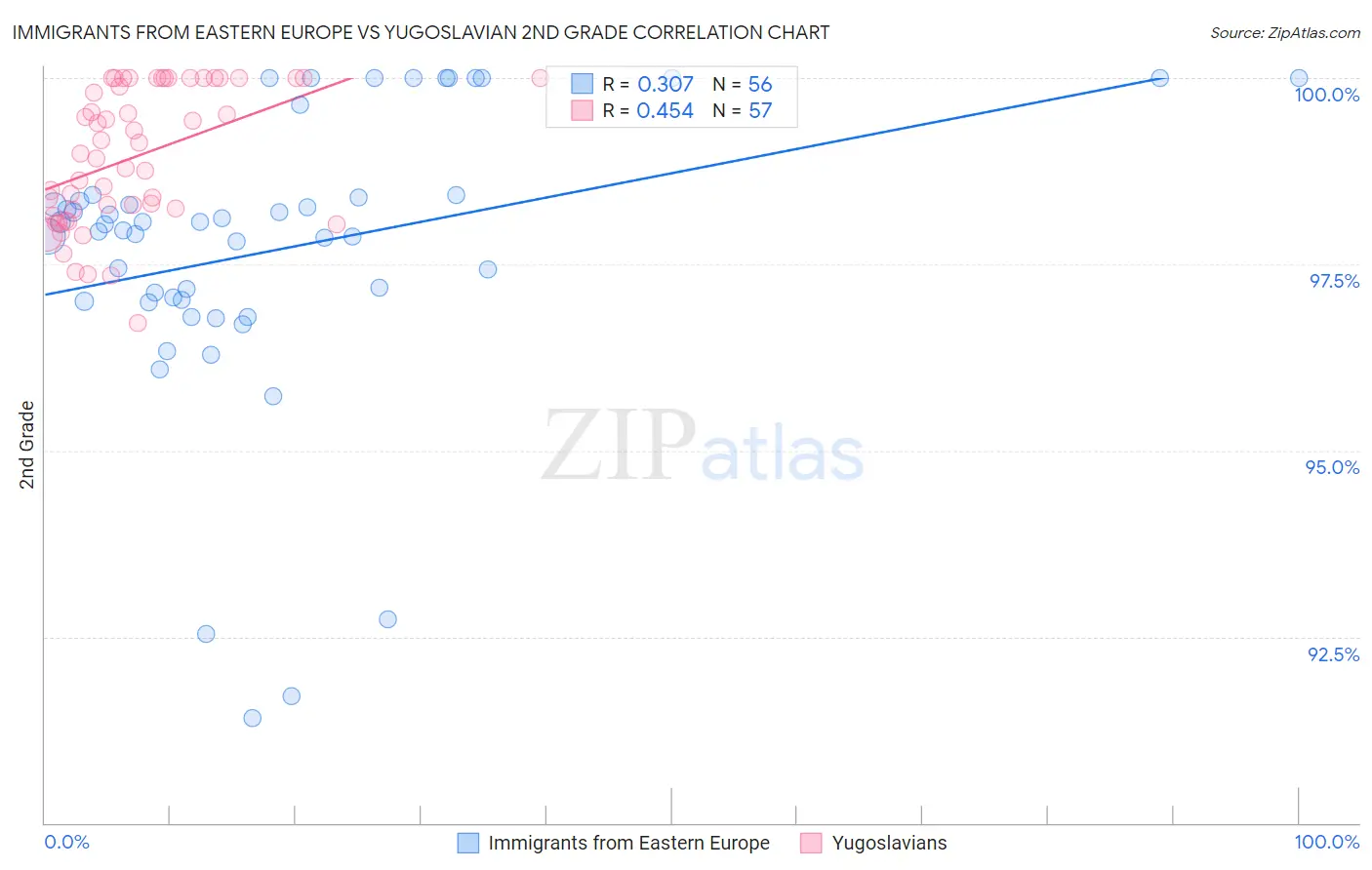 Immigrants from Eastern Europe vs Yugoslavian 2nd Grade Correlation Chart