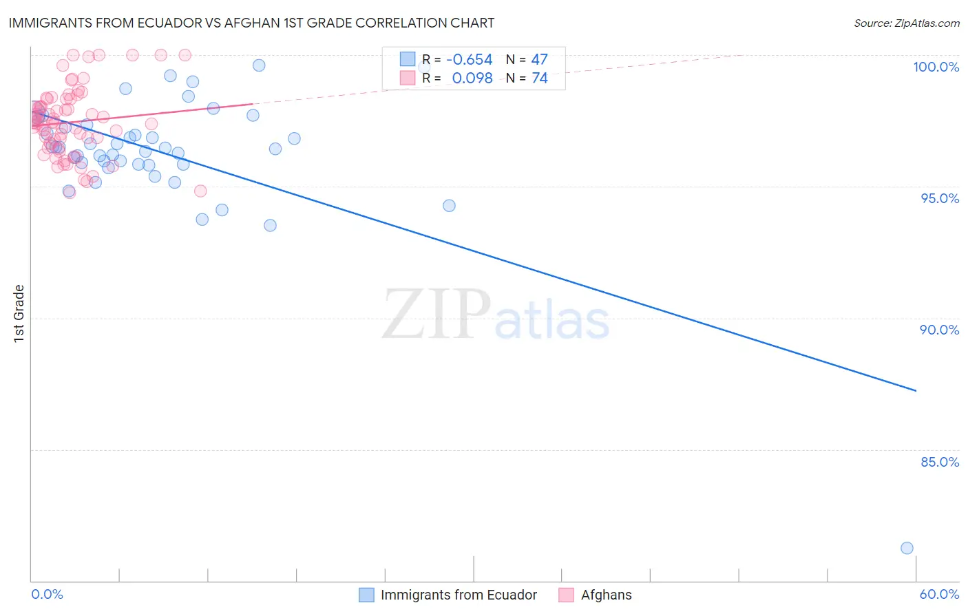 Immigrants from Ecuador vs Afghan 1st Grade Correlation Chart