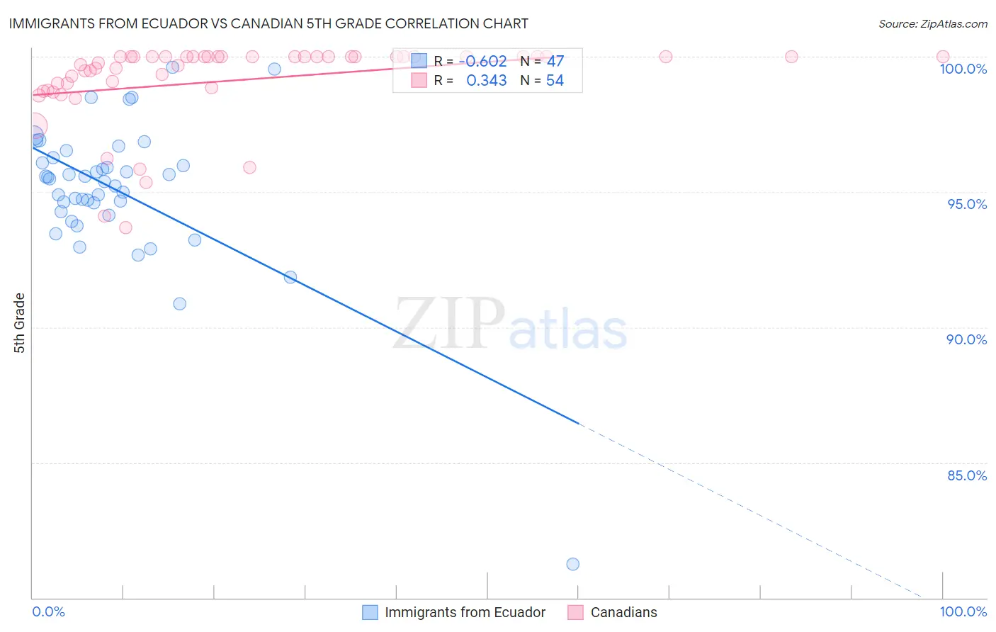 Immigrants from Ecuador vs Canadian 5th Grade Correlation Chart