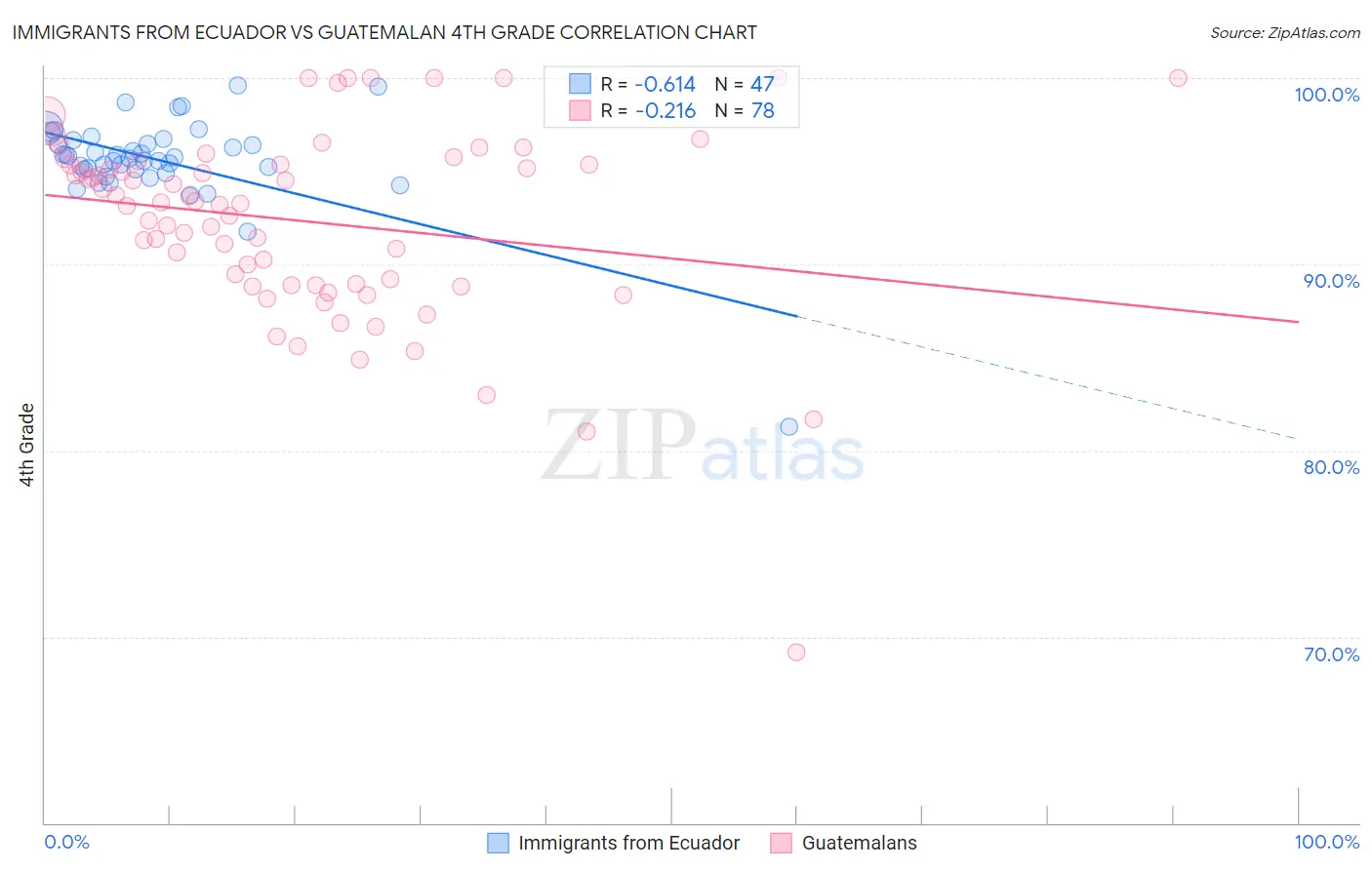 Immigrants from Ecuador vs Guatemalan 4th Grade Correlation Chart