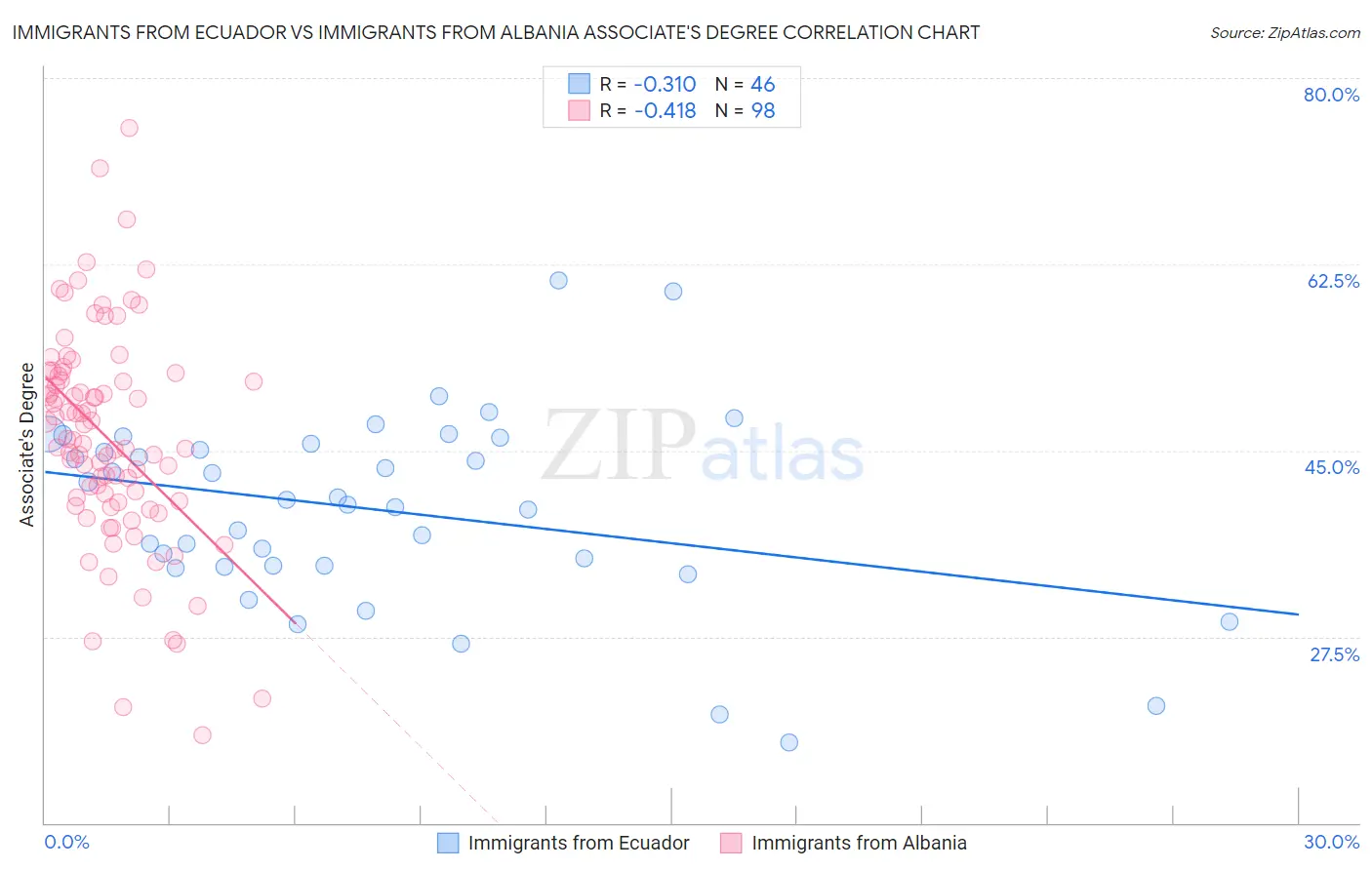 Immigrants from Ecuador vs Immigrants from Albania Associate's Degree Correlation Chart