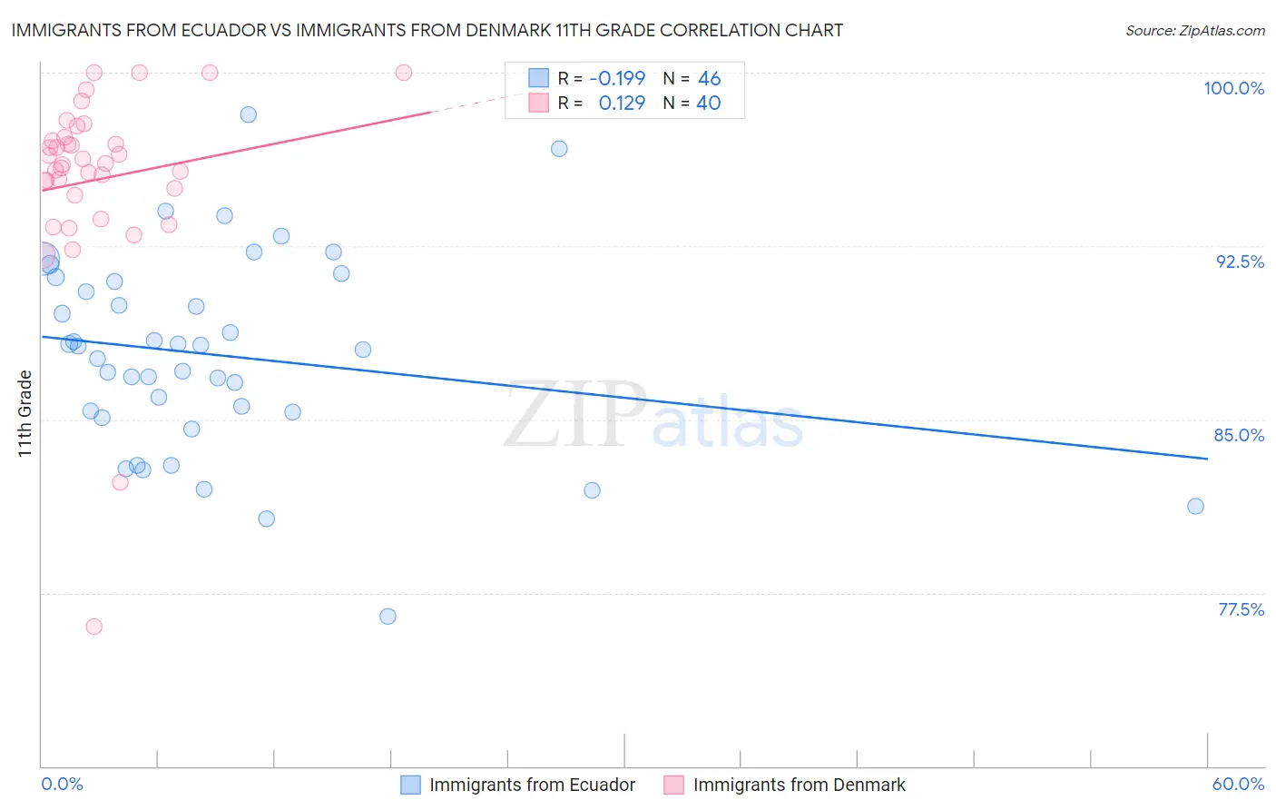 Immigrants from Ecuador vs Immigrants from Denmark 11th Grade Correlation Chart