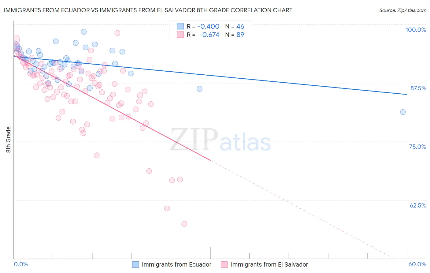 Immigrants from Ecuador vs Immigrants from El Salvador 8th Grade Correlation Chart