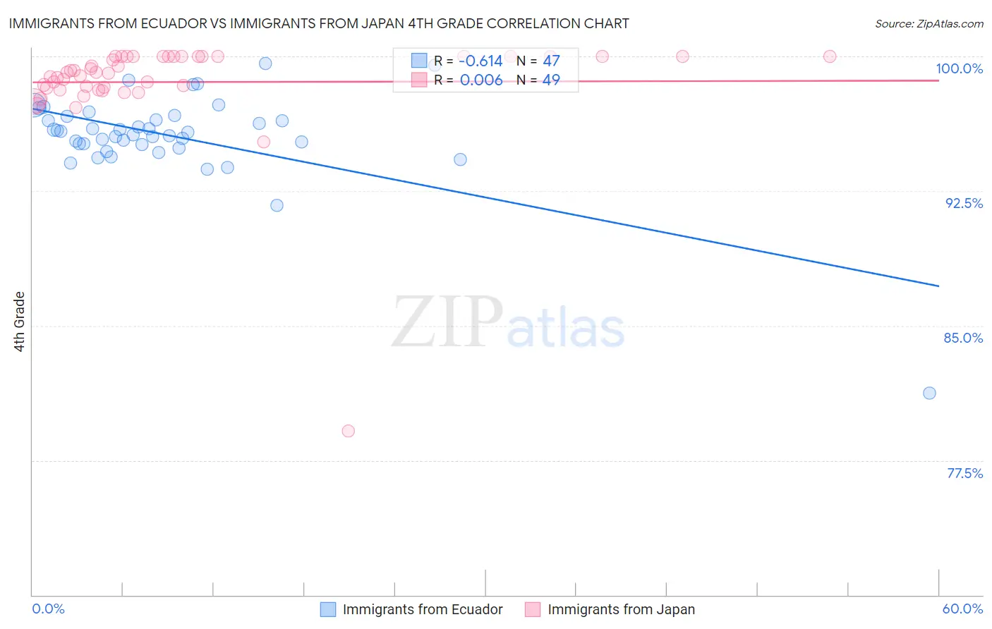 Immigrants from Ecuador vs Immigrants from Japan 4th Grade Correlation Chart