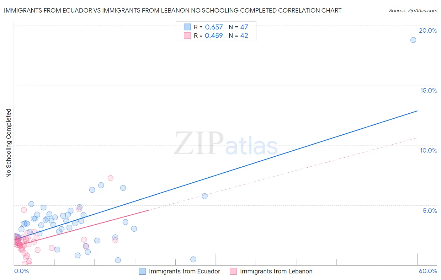 Immigrants from Ecuador vs Immigrants from Lebanon No Schooling Completed Correlation Chart