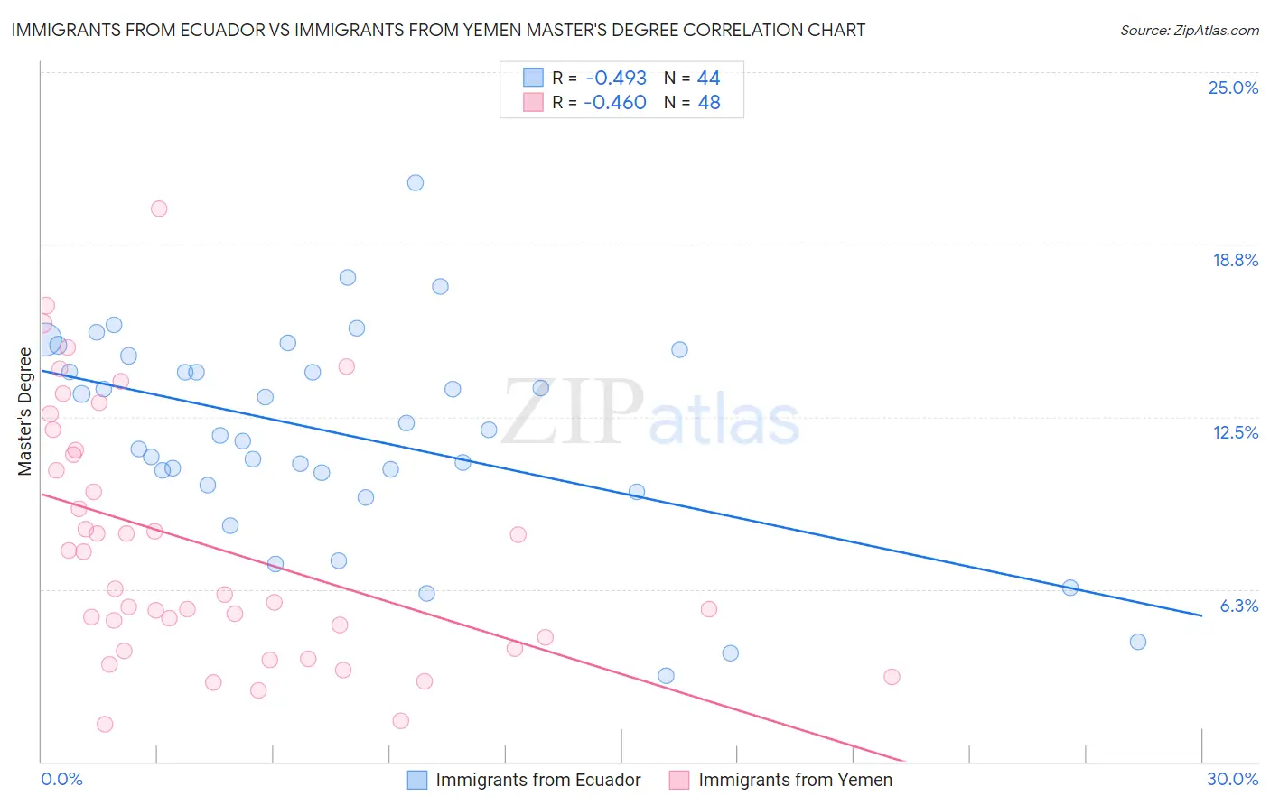 Immigrants from Ecuador vs Immigrants from Yemen Master's Degree Correlation Chart