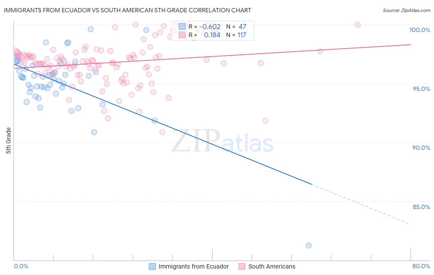 Immigrants from Ecuador vs South American 5th Grade Correlation Chart