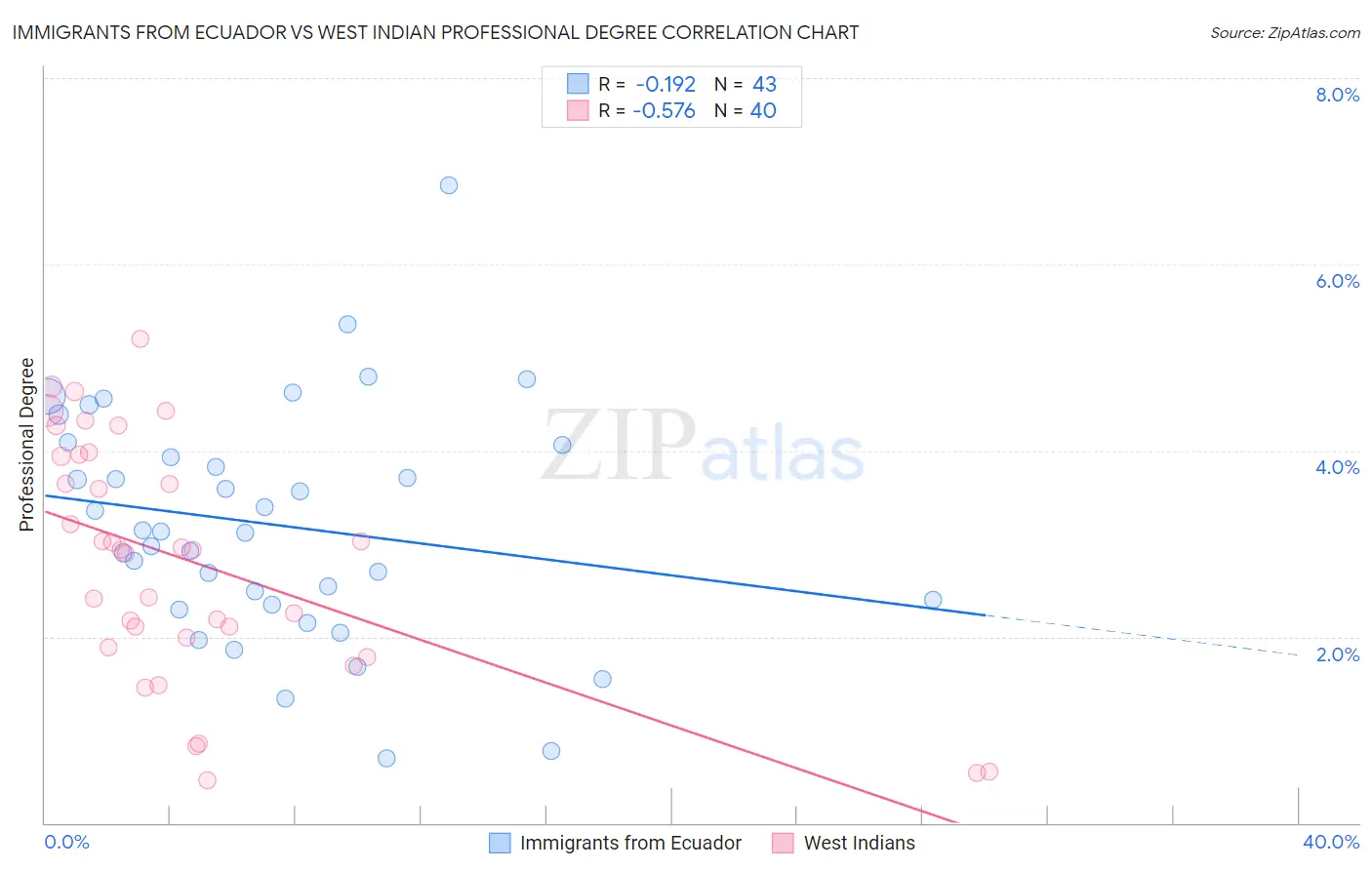 Immigrants from Ecuador vs West Indian Professional Degree Correlation Chart