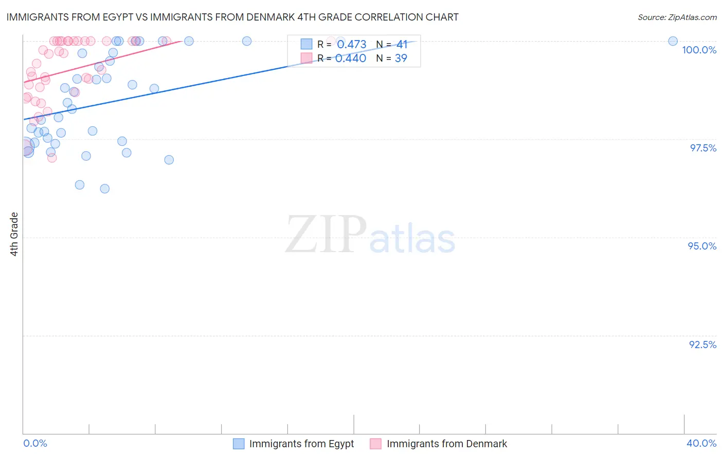 Immigrants from Egypt vs Immigrants from Denmark 4th Grade Correlation Chart