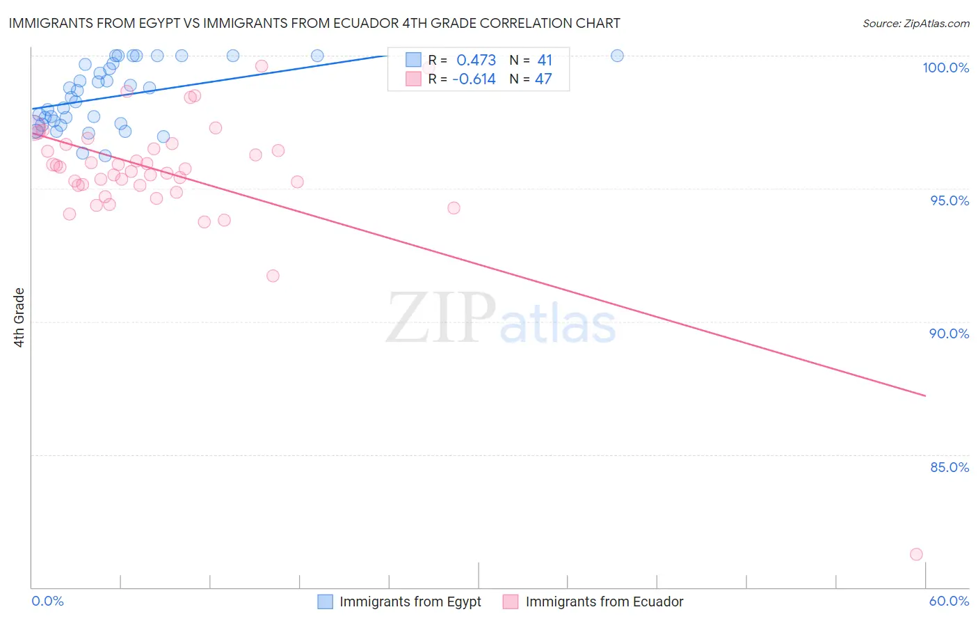 Immigrants from Egypt vs Immigrants from Ecuador 4th Grade Correlation Chart