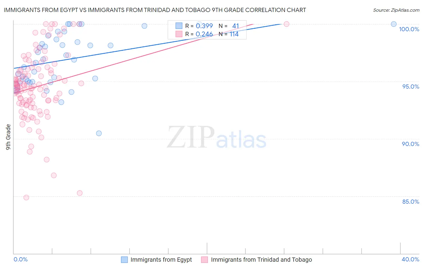 Immigrants from Egypt vs Immigrants from Trinidad and Tobago 9th Grade Correlation Chart