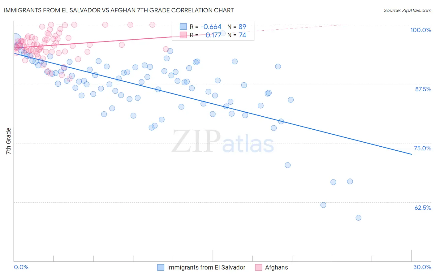 Immigrants from El Salvador vs Afghan 7th Grade Correlation Chart