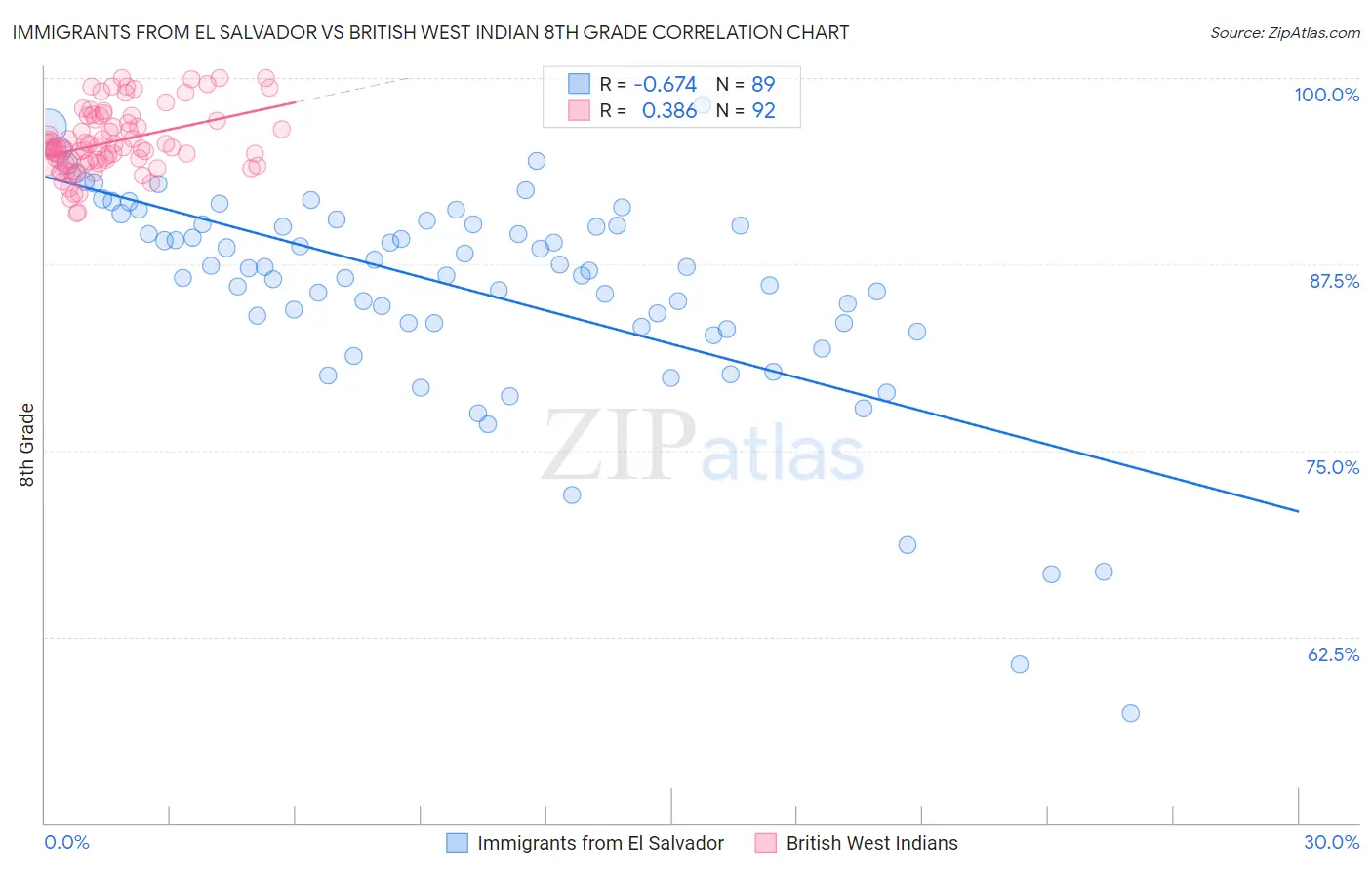 Immigrants from El Salvador vs British West Indian 8th Grade Correlation Chart
