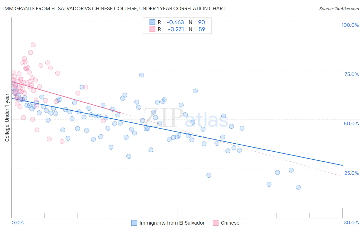 Immigrants from El Salvador vs Chinese College, Under 1 year Correlation Chart