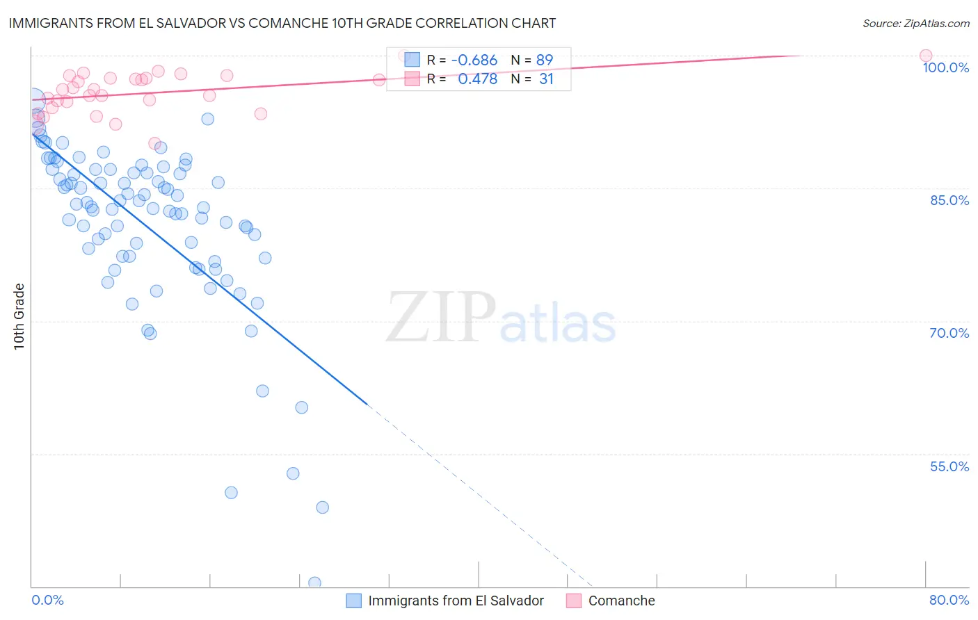 Immigrants from El Salvador vs Comanche 10th Grade Correlation Chart