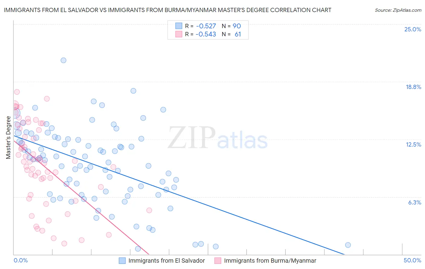 Immigrants from El Salvador vs Immigrants from Burma/Myanmar Master's Degree Correlation Chart