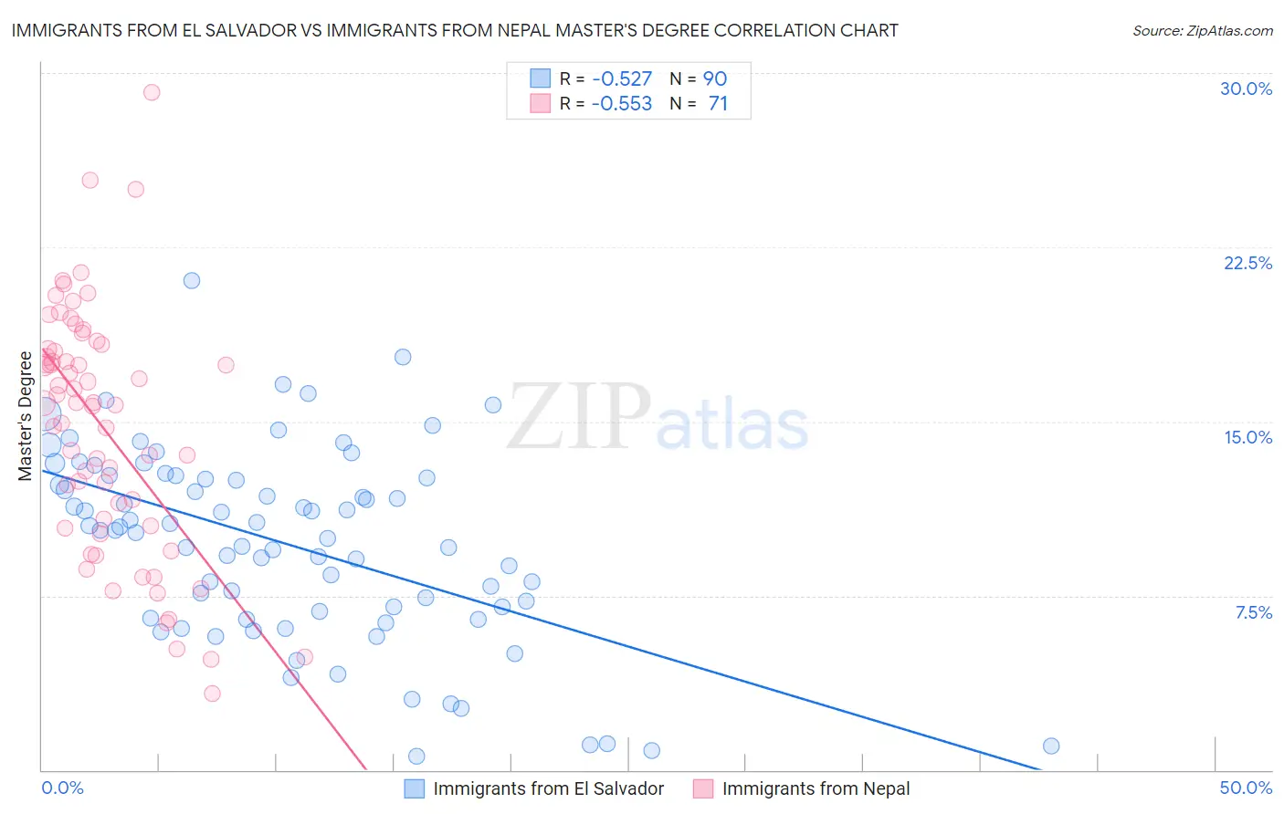 Immigrants from El Salvador vs Immigrants from Nepal Master's Degree Correlation Chart