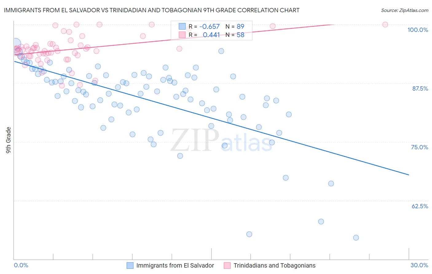 Immigrants from El Salvador vs Trinidadian and Tobagonian 9th Grade Correlation Chart