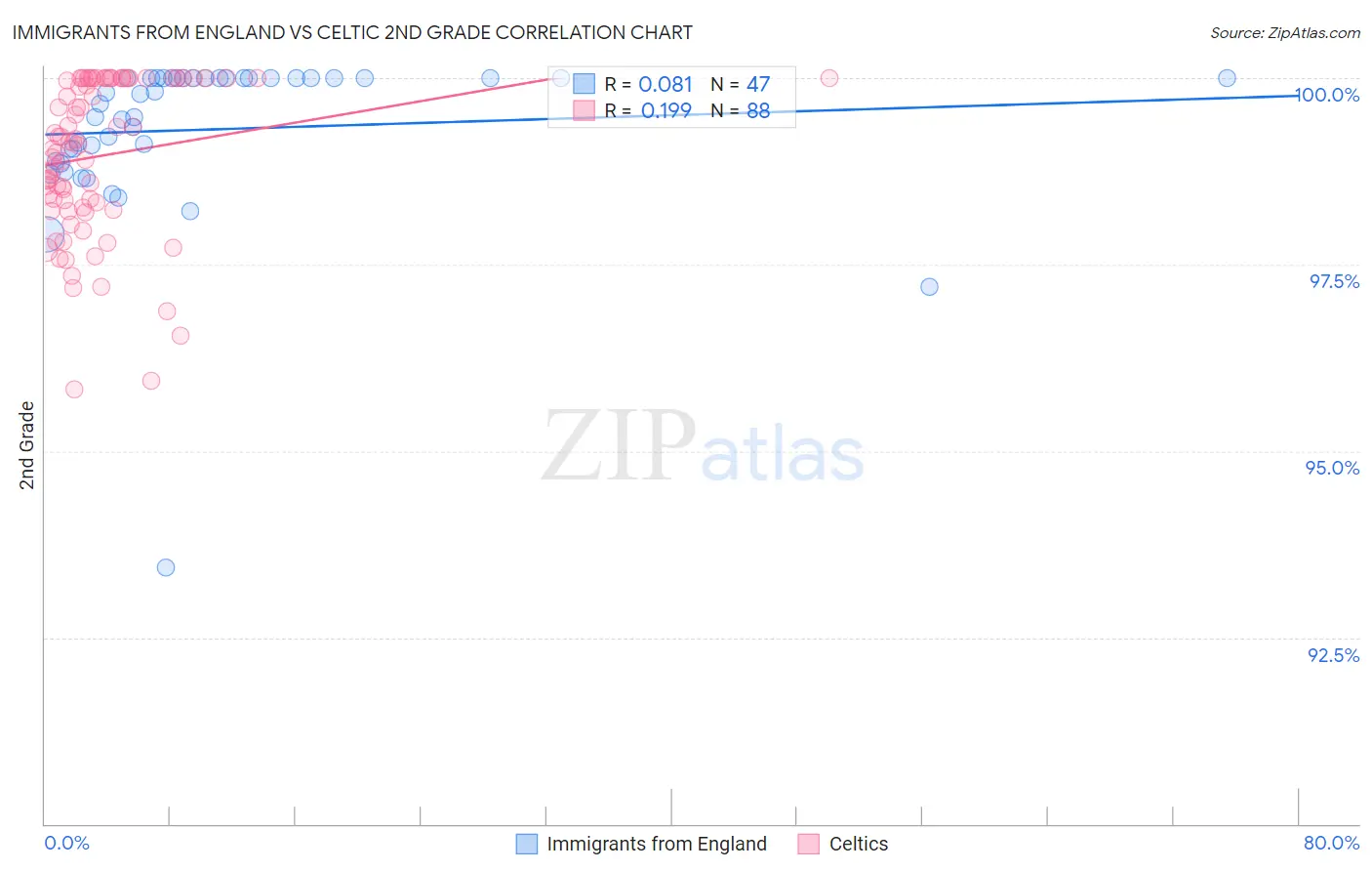 Immigrants from England vs Celtic 2nd Grade Correlation Chart
