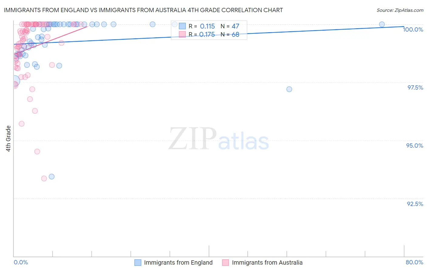 Immigrants from England vs Immigrants from Australia 4th Grade Correlation Chart