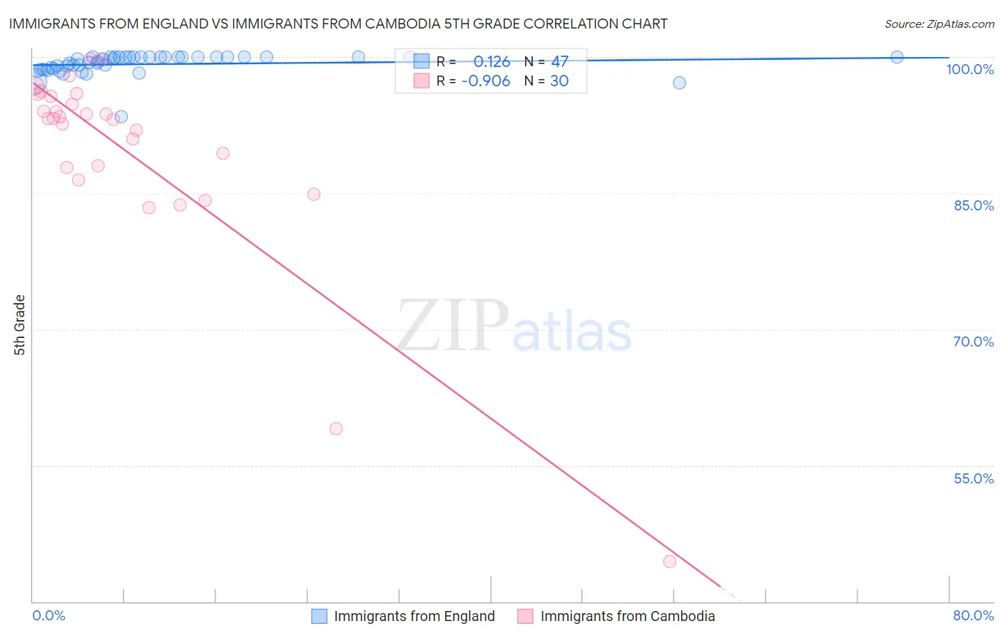 Immigrants from England vs Immigrants from Cambodia 5th Grade Correlation Chart