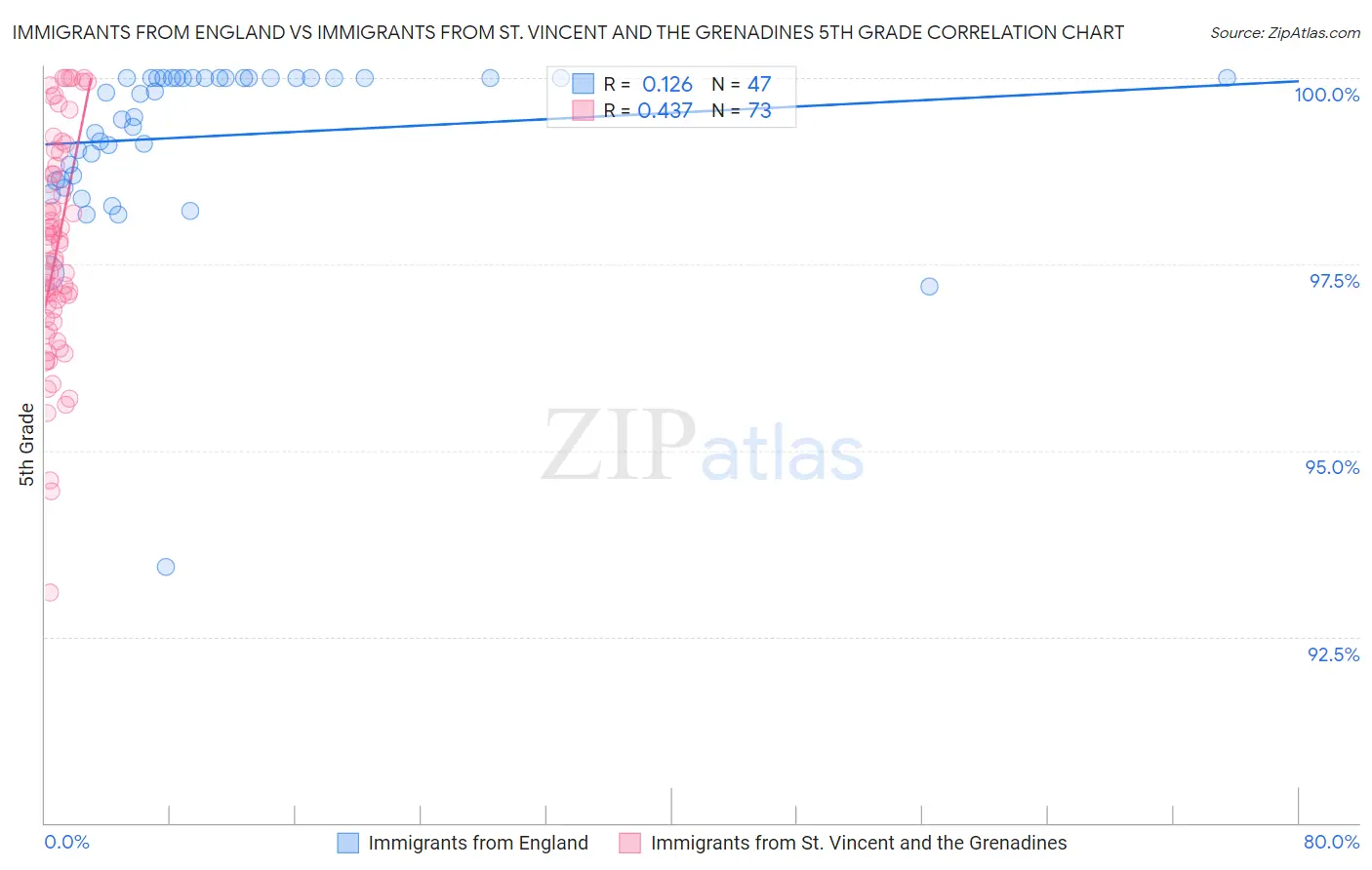 Immigrants from England vs Immigrants from St. Vincent and the Grenadines 5th Grade Correlation Chart