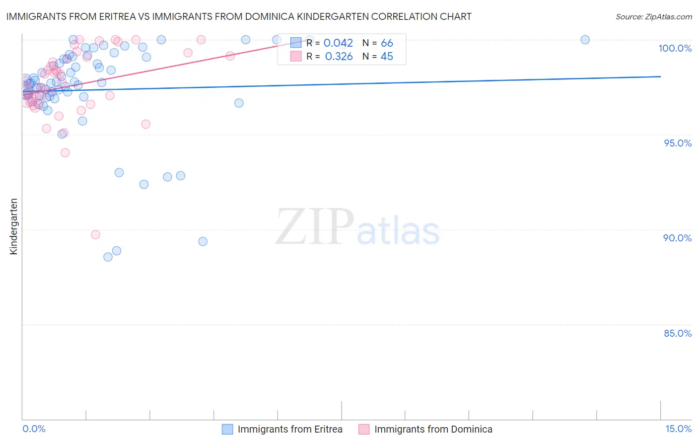 Immigrants from Eritrea vs Immigrants from Dominica Kindergarten Correlation Chart