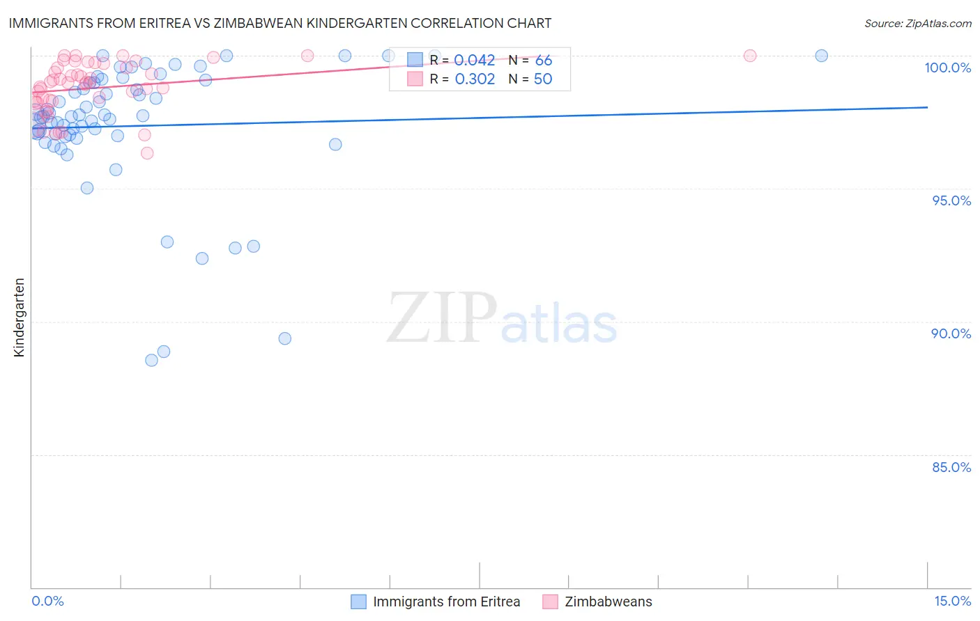 Immigrants from Eritrea vs Zimbabwean Kindergarten Correlation Chart