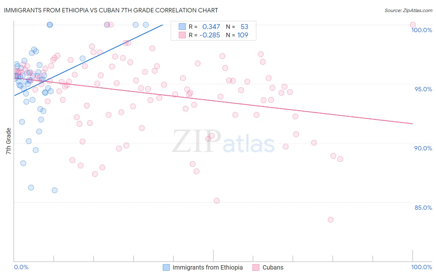 Immigrants from Ethiopia vs Cuban 7th Grade Correlation Chart