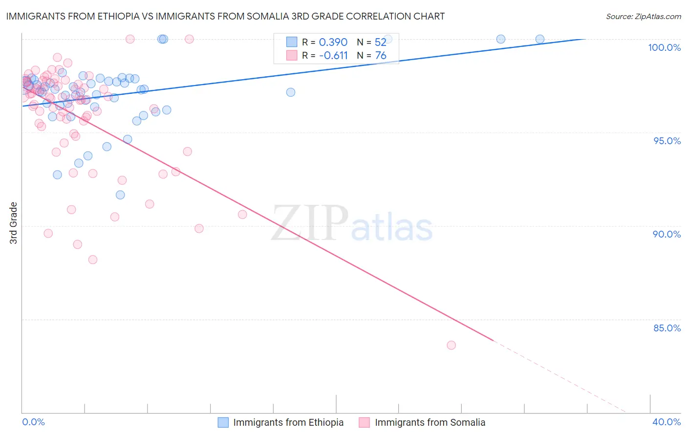 Immigrants from Ethiopia vs Immigrants from Somalia 3rd Grade Correlation Chart