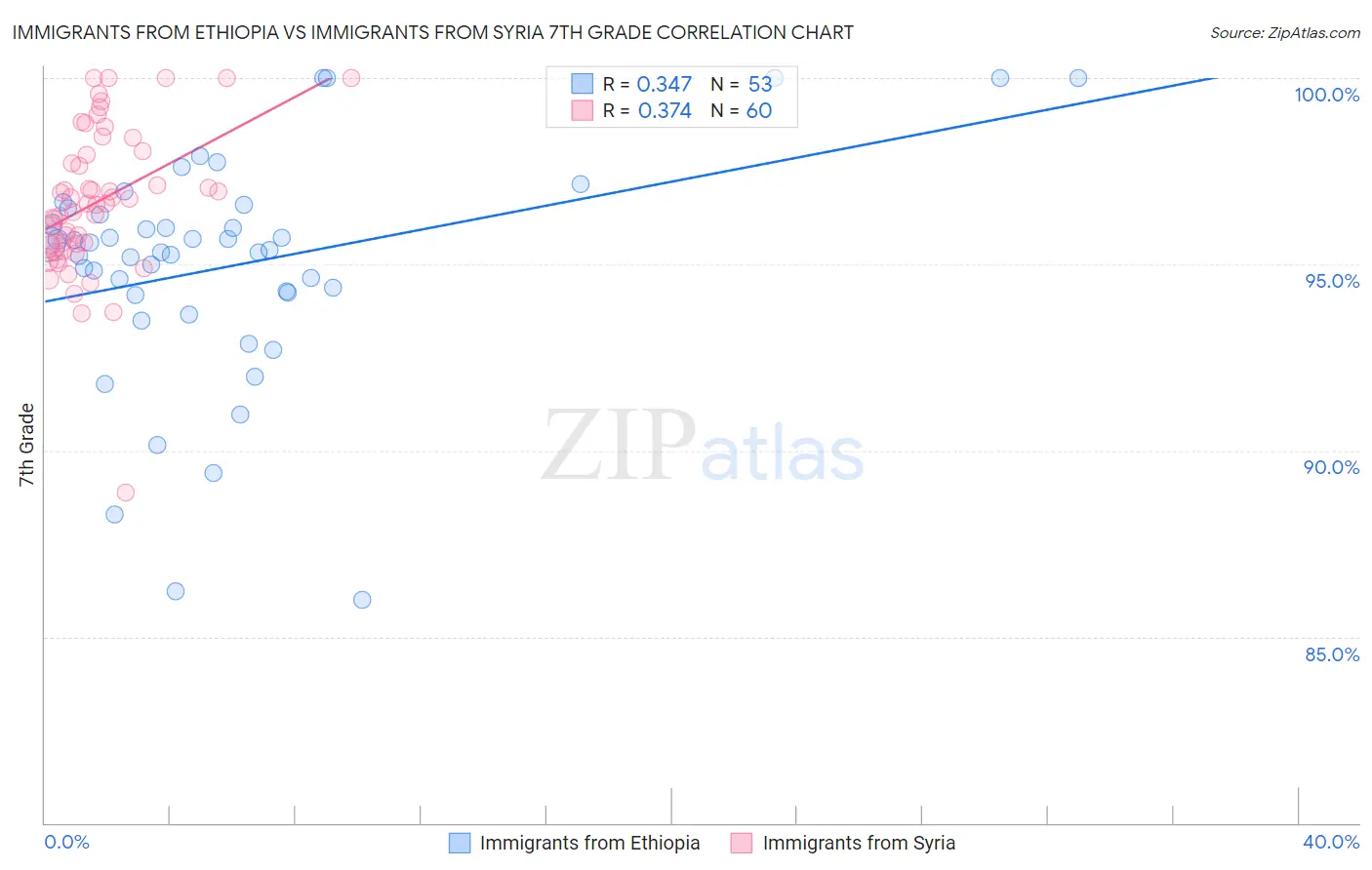 Immigrants from Ethiopia vs Immigrants from Syria 7th Grade Correlation Chart