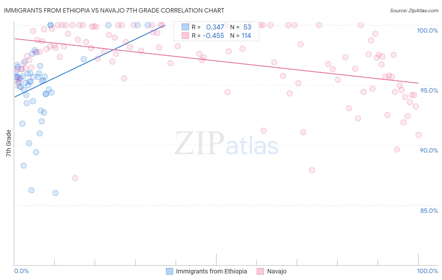 Immigrants from Ethiopia vs Navajo 7th Grade Correlation Chart