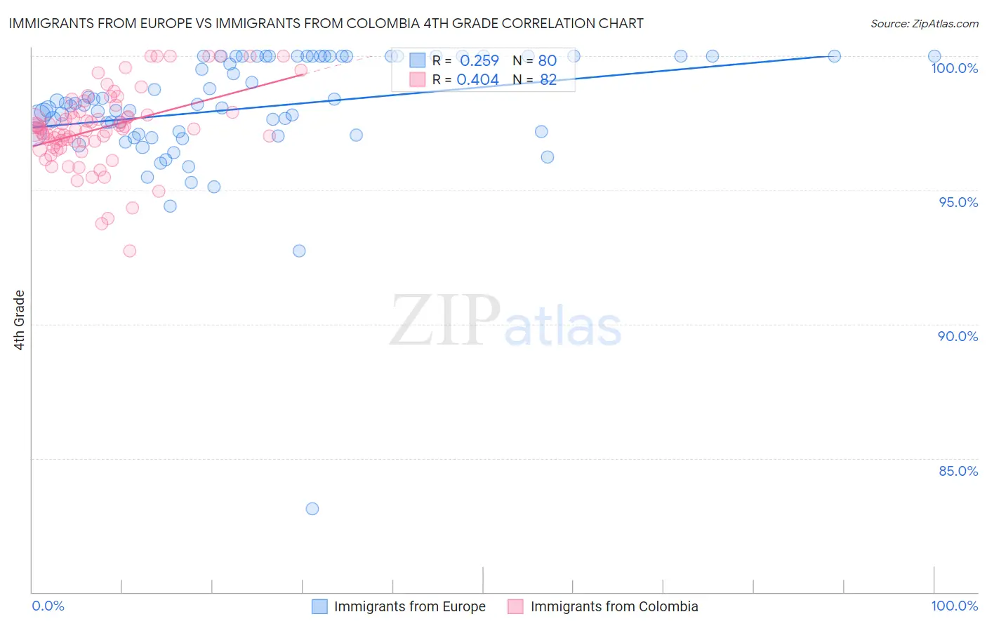 Immigrants from Europe vs Immigrants from Colombia 4th Grade Correlation Chart