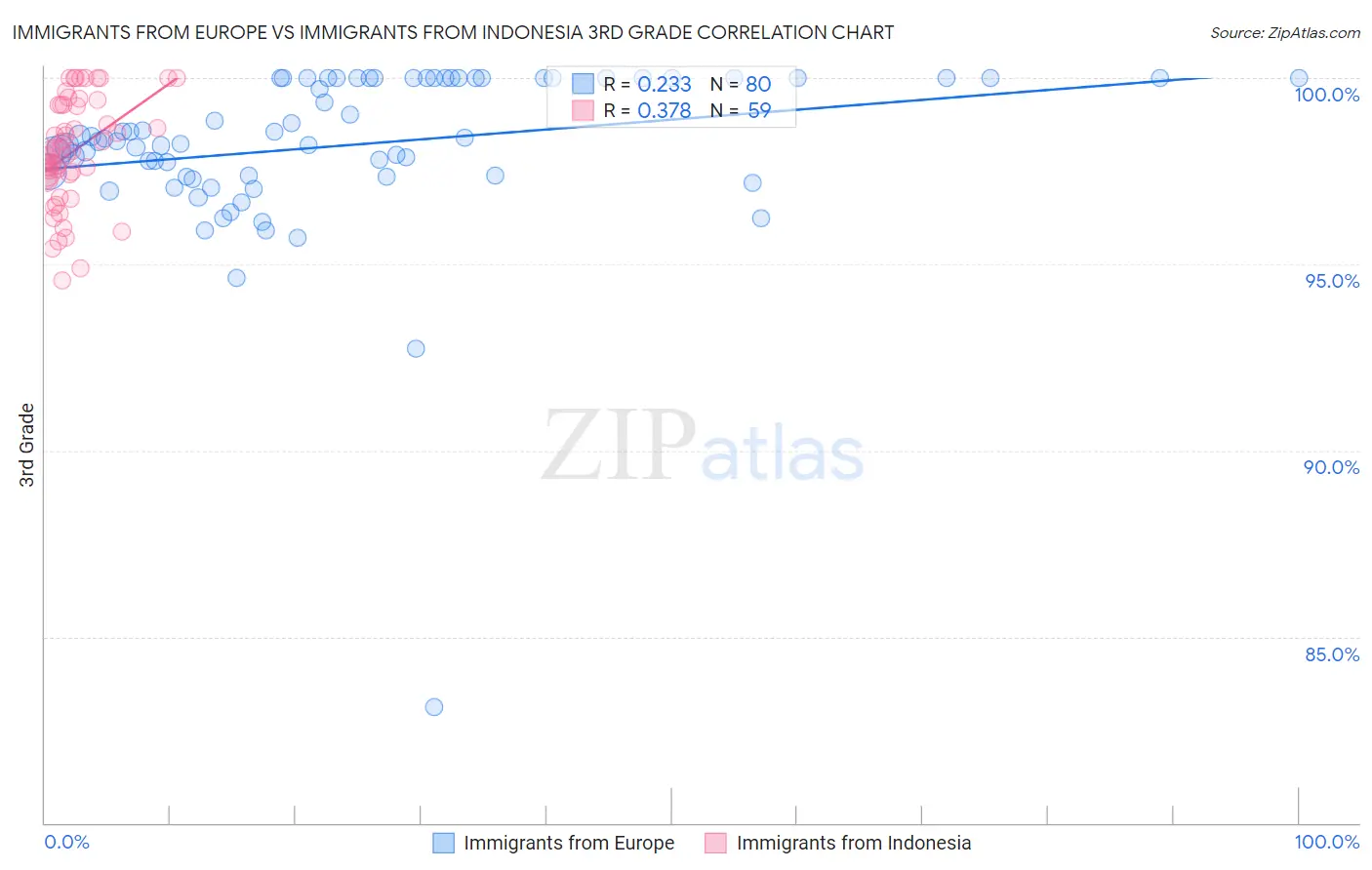 Immigrants from Europe vs Immigrants from Indonesia 3rd Grade Correlation Chart
