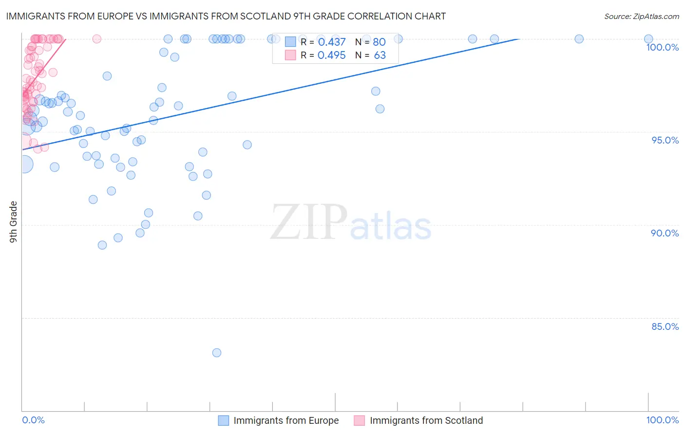 Immigrants from Europe vs Immigrants from Scotland 9th Grade Correlation Chart