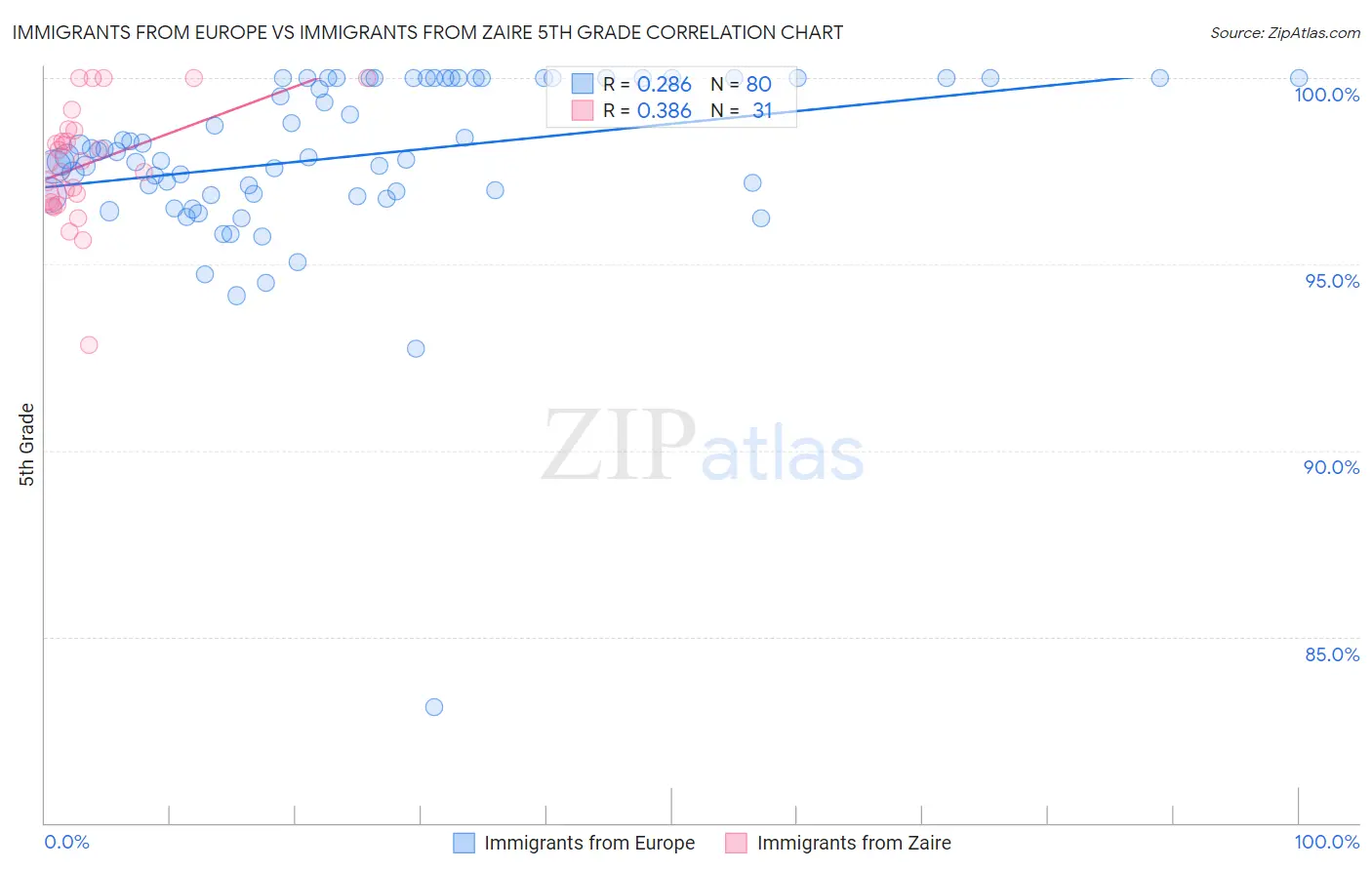 Immigrants from Europe vs Immigrants from Zaire 5th Grade Correlation Chart