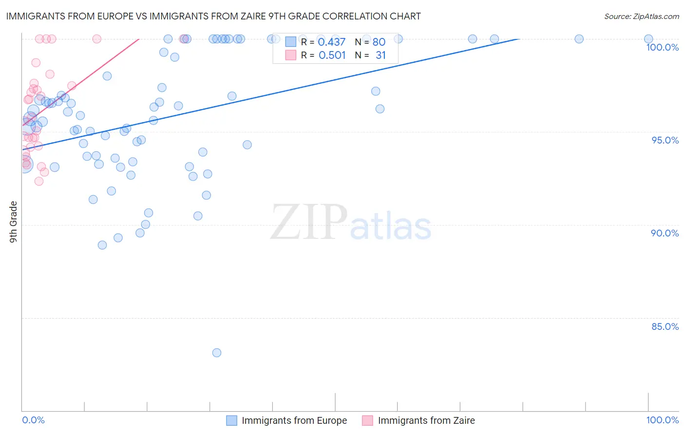 Immigrants from Europe vs Immigrants from Zaire 9th Grade