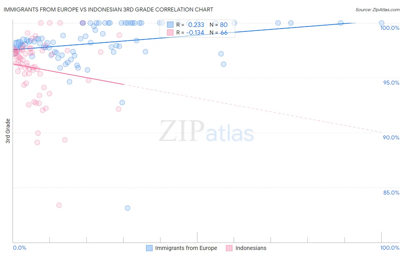 Immigrants from Europe vs Indonesian 3rd Grade Correlation Chart