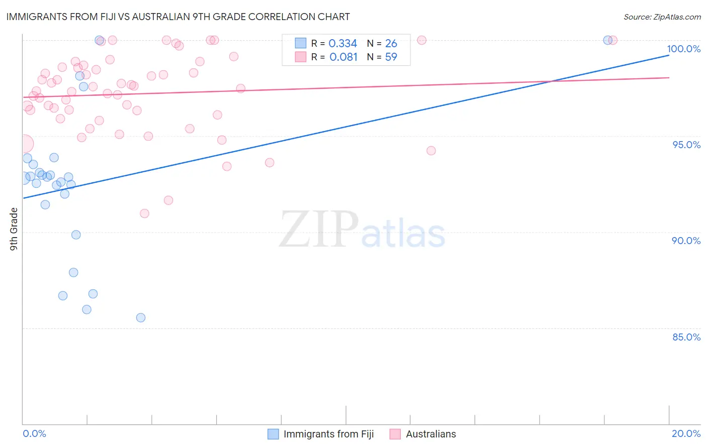 Immigrants from Fiji vs Australian 9th Grade Correlation Chart