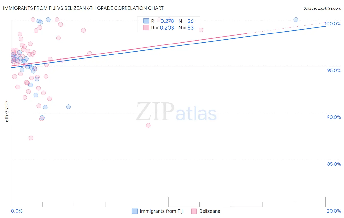 Immigrants from Fiji vs Belizean 6th Grade Correlation Chart