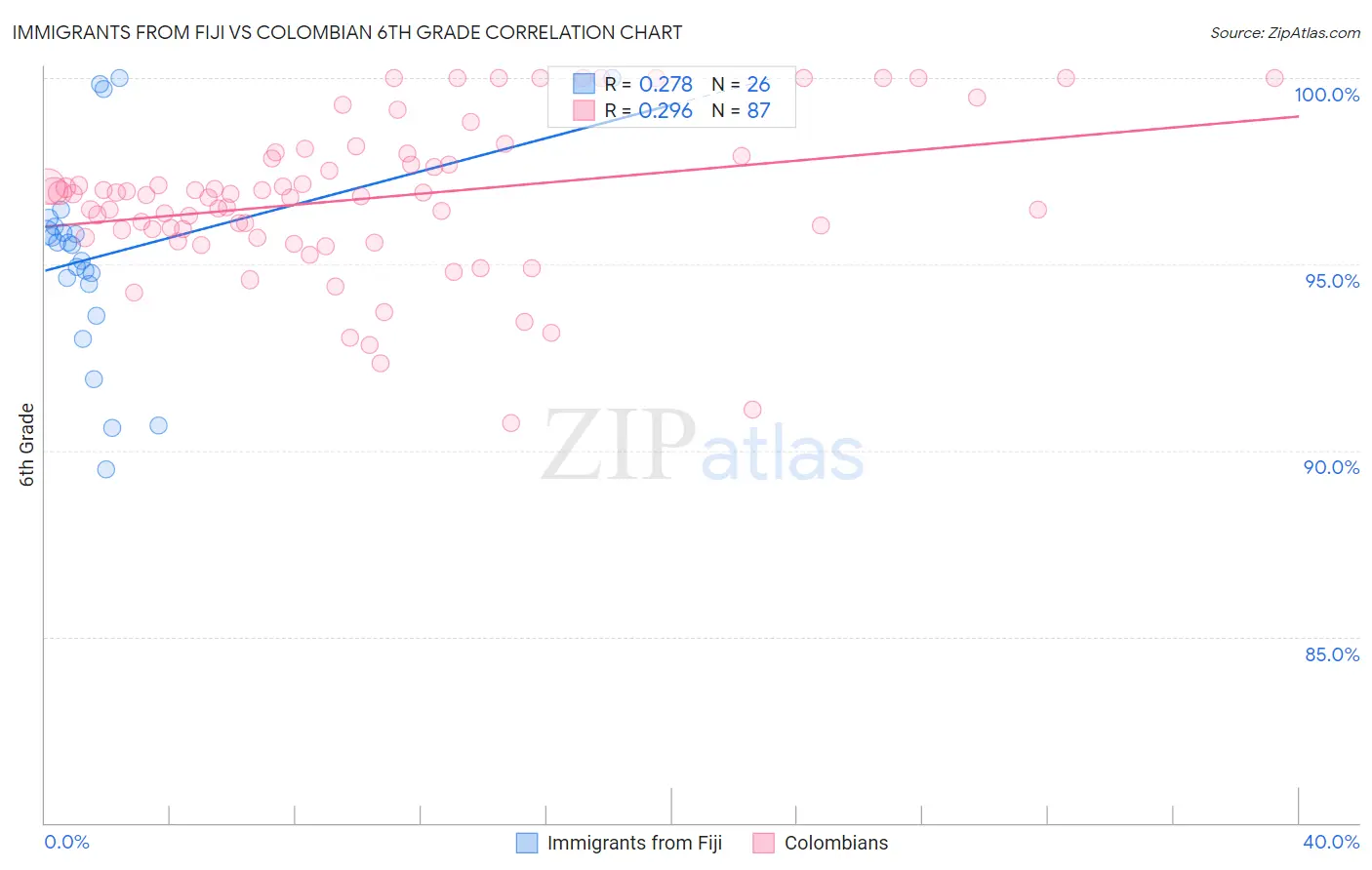 Immigrants from Fiji vs Colombian 6th Grade Correlation Chart