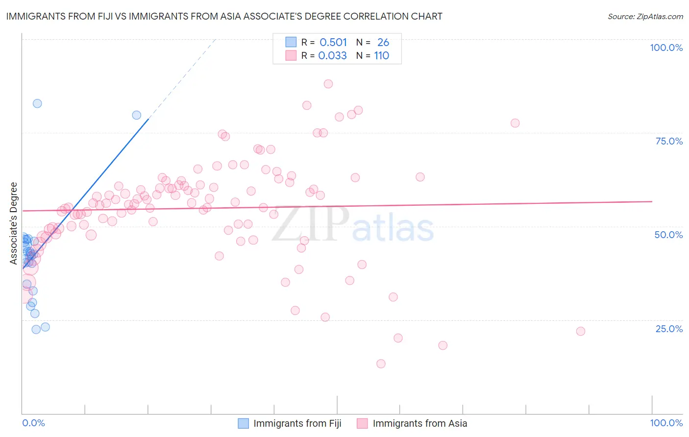 Immigrants from Fiji vs Immigrants from Asia Associate's Degree Correlation Chart