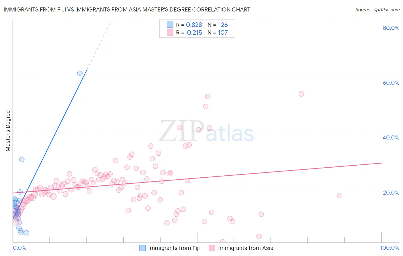 Immigrants from Fiji vs Immigrants from Asia Master's Degree Correlation Chart