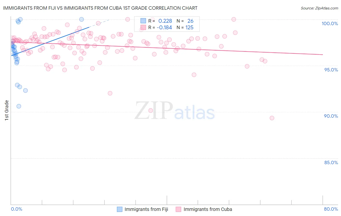Immigrants from Fiji vs Immigrants from Cuba 1st Grade Correlation Chart